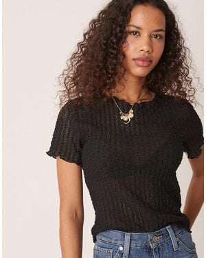 Textured Jersey Long Sleeve T-Shirt With Lettuce Edging - Black