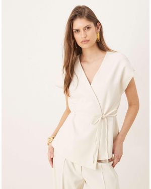 V-neck Tie Waist Waistcoat Co-ord - Natural