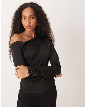 Slinky Drapey Long Sleeve Top - Black