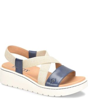 Born Kasady Br0057334 Sandals Leather Wedge Heel Platform Zogg2681 - Blue