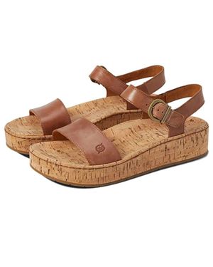 Born Sari Sandals Leather Open Toe Wedge Heel Platform Ver1597 - Brown