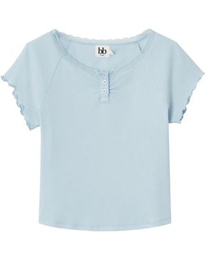 Lace-Trim Ribbed T-Shirt - Blue