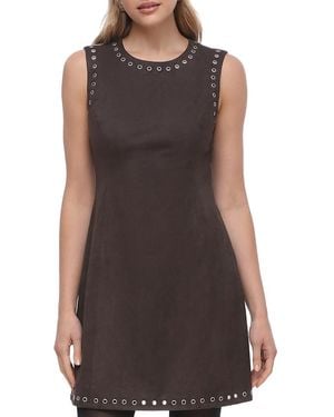 Grommet Sleeveless Faux Suede A-Line Dress - Multicolor