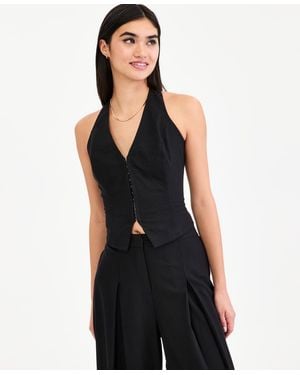 Smocked-back Linen-blend Vest - Black