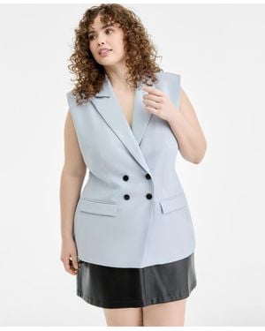 Trendy Plus Size Peak-lapel Double-breasted Vest - Blue