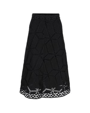 Embroidered Midi A-Line Skirt - Black