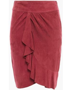 Susette Wrap-effect Ruffled Suede Skirt - Red