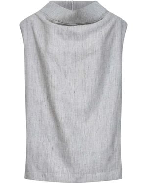 Linen And Wool Chevron Long Sleeveless Top - Gray