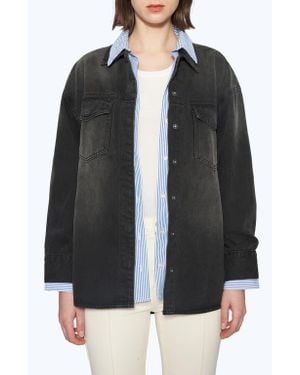 Relaxed Fit Print Denim Shirt Jacket - Natural