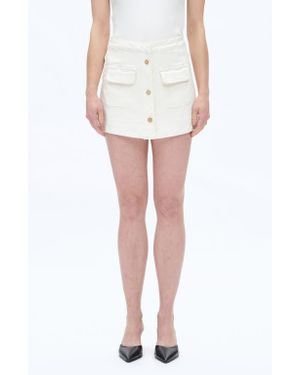 High Waist Culotte Denim Skort - White