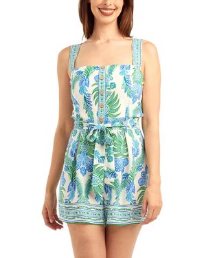 Poplin Printed Button-front Romper - Blue