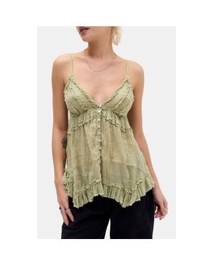 Clara Embroidered & Ruffle Trim Camisole - Green