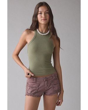 Off-Duty Ribbed High Neck Tank Top - Brown
