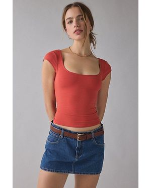 Drew Cap Sleeve Square Neck Cropped Tee Top - Red