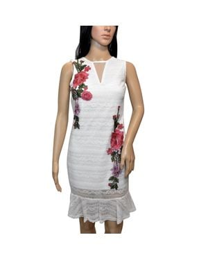 Floral Embroidered Sleeveless Lace Dress - Gray