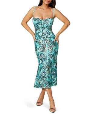 Bow Front Bustier Knit Slip Midi Dress - Blue