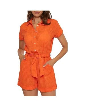 Cabana Cover Up Romper Carrot Textured One Piece Gbo912 - Orange