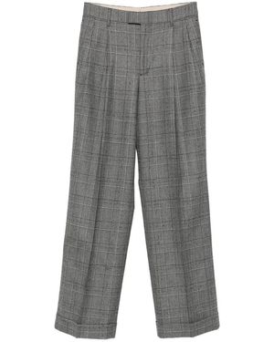 Pleated Checked Pants - Gray