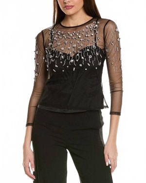 Sheer Rhinestones Top - Black