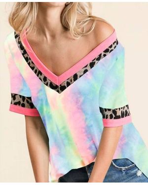 Chloe Tie Dye & Leopard Top - Blue