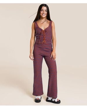 Fever Twist Flare Rib Pants - Red