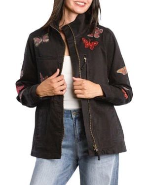 Butterfly Embroidery Cotton Blend Jacket - Blue
