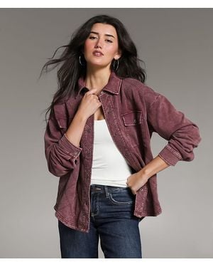 Pieced Waffle Knit Striped Shacket - Multicolor