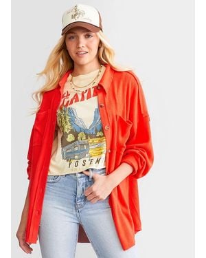 Brushed Rib Knit Oversized Boyfriend Shirt - Red