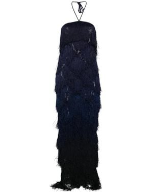 Laguna Fringed Halterneck Maxi Dress - Blue