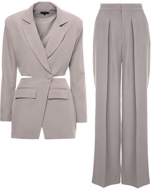 Suit With Blazer With Waistline Cut-Out And Ultra Wide Leg Pants - Gray