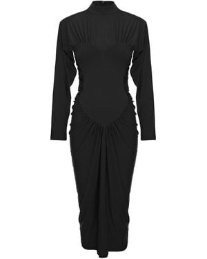 Midi Dress With Oversized Shoulders And Asymmetrical Slit - Black