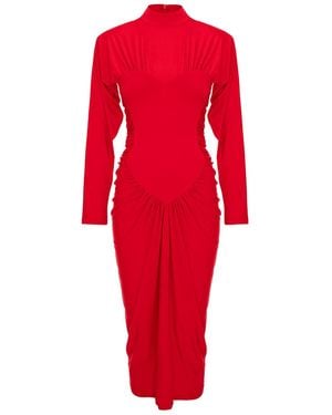 Midi Dress With Pleats And Proeminent Shoulders - Red