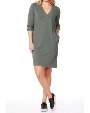 Sleeve Tab V-Neck Dress - Gray