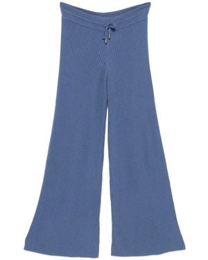 Drawstring-Fastening Ribbed Pants - Blue