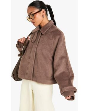 Vintage Suede Look Oversized Biker Jacket - Brown