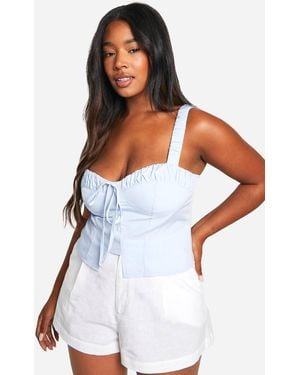 Plus Ruched Tie Front Split Hem Corset Top - White