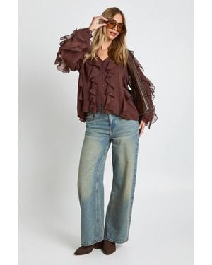 Ruffle Chiffon Blouse - Brown