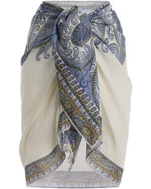 Arcadia Paisley Cotton-Gauze Mini Pareo Skirt - Blue