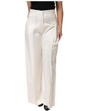 White Viscose Linen Wide Leg Palazzo S Pants - White