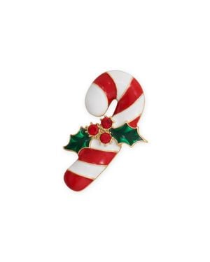 Tone Candy Cane With Holly Fashion Pin - Red