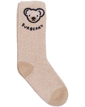 Discover the refined sophistication of Burberry socks for a touch of luxury in every step. From the iconic Burberry Check Wool Cotton Blend Socks in timeless brown to the modern allure of Intarsia-Knit Logo Socks in muted gray, each pair is crafted with exceptional materials like wool, polyamide, and elastane for comfort and durability. Embrace the distinctive British heritage with Check Tights or indulge in the understated elegance of Ribbed Wool Blend Tights in adaptable green. Whether opting for the equestrian-inspired Black Equestrian Knight Crew Socks or the delicate charm of Rose-Print Tights in pure white, Lyst's curated selection ensures a genteel finish to any ensemble. Experience the perfect amalgamation of traditional craftsmanship and contemporary design in Burberry's diverse range of hosiery, available in various hues including sophisticated black, crisp white, and vibrant red.