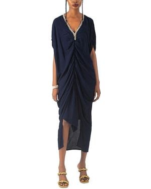 Olami Pearl Trim Asymmetric Midi Dress - Blue