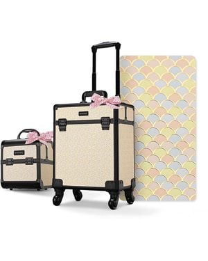 Rolling Makeup Train Case On Wheels Cosmetic Trolley Art Deco Pastel - Natural
