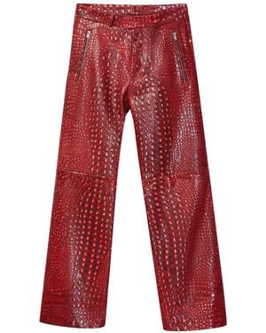 Zip Leather Pants - Red