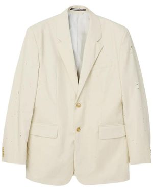 Blazer Boutonné À Effet Usé - White