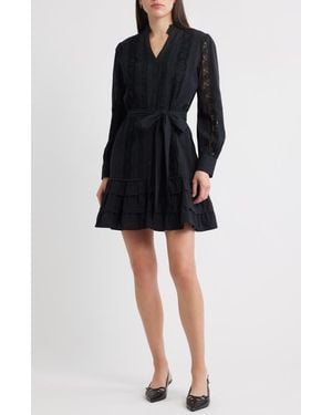 Lace Panel Long Sleeve Minidress - Black