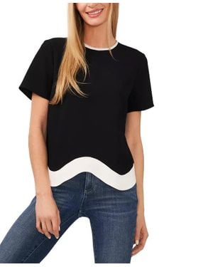 Top Contrast-Hem Short Sleeve Round Neck Blouse Fts1327 - Black