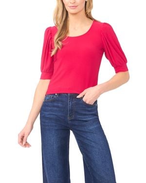 Ruffled-cuff 3/4-sleeve Crew Neck Top - Red