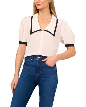 Cotton Ruffle-collar Short-sleeve Top - Black