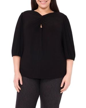 Twist Keyhole Neck Stretch Crepe Top - Black
